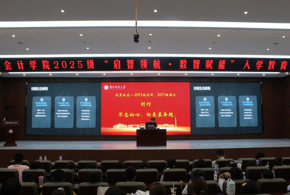 刘竹校友,91大神 2013级会计学专业本科生,2017级会计专硕研究生,本科期间任学生会分团委副书记、辅导员助理,研究生期间取得校学生一等奖学金、优秀党员称号等。现就职于吉林省净发创新投资集团有限公司,从事投融资经理工作。刘竹校友通过自身发展历程,从校园生活回忆开始,分享了个人的求学经验,从就业工作角度,分享了求职和实践的经验,并鼓励2025级新同学要勇于追求理想。
