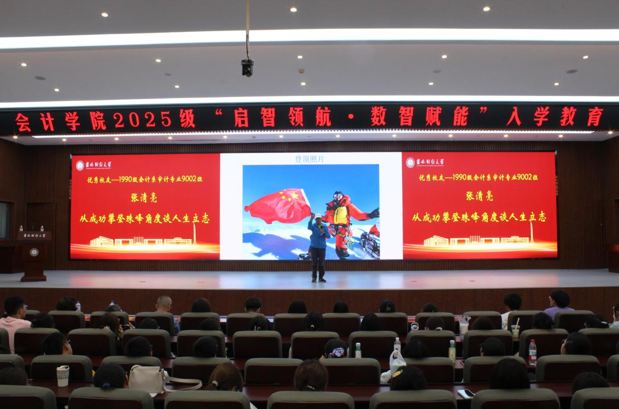 2024年5月19日清晨4时10分(尼泊尔时间),张清亮校友从南坡登顶海拔8848.86米的世界最高峰——珠穆朗玛峰。2025年8月份又成功登顶乔戈里峰。张清亮校友从成功攀登珠峰的收获与感悟开始,围绕人生立志、不忘求学初心、锚定未来发展等方面与2025级新同学进行了深度交流,并分享了他的学习、成长、求职就业等经验建议。